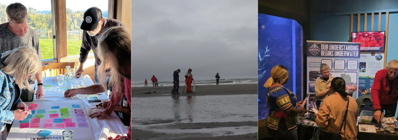 Photo: Snapshots of Human Dimensions activities in 2025 featuring the April community meetings and events supporting the Ocean Values of Spanish-Speaking Oregonians project.