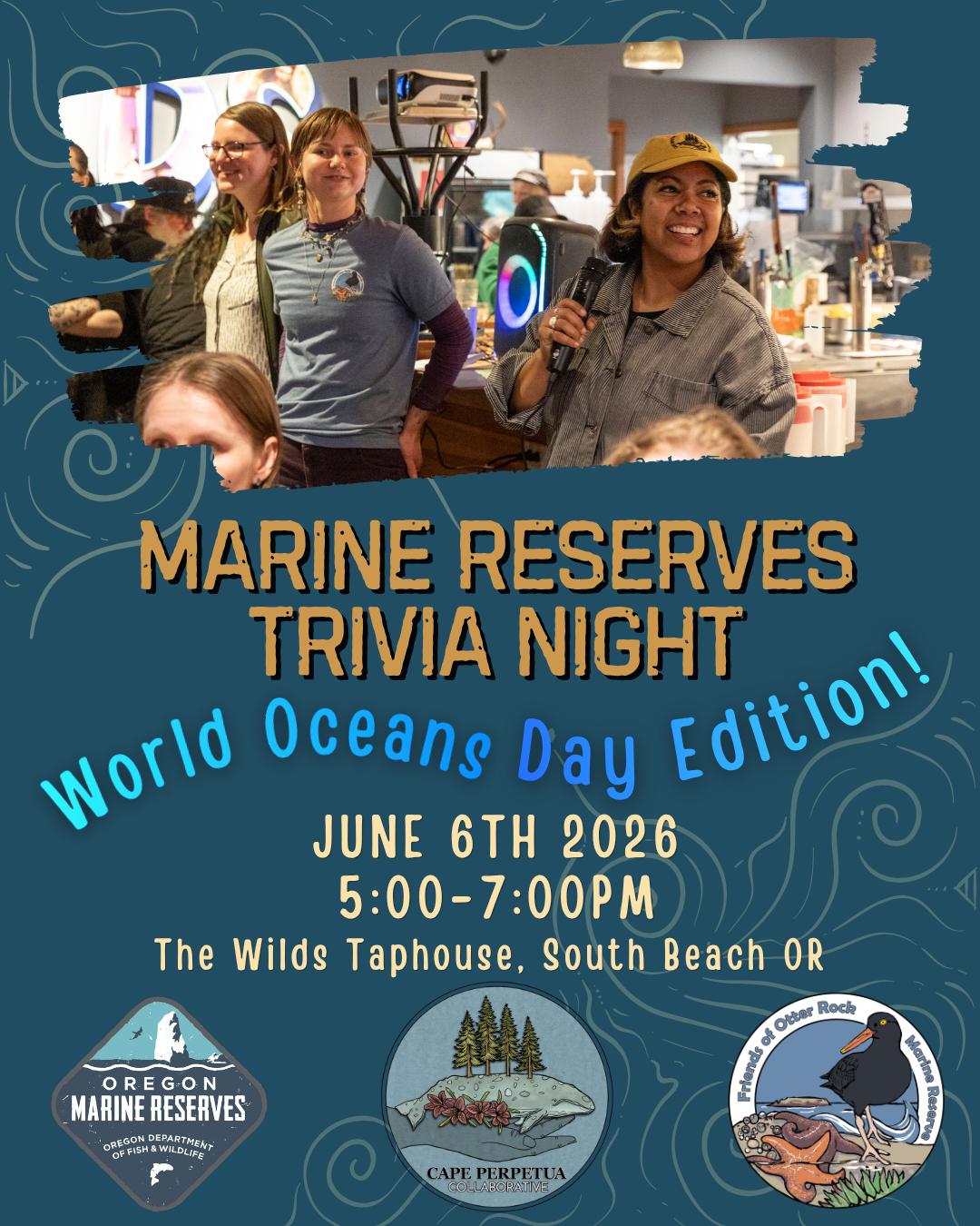 Join the ODFW Marine Reserves team, Cape Perpetua Collaborative, and Friends of Otter Rock Marine Reserve at The Wilds Taphouse for an evening of trivia fun as we celebrate World